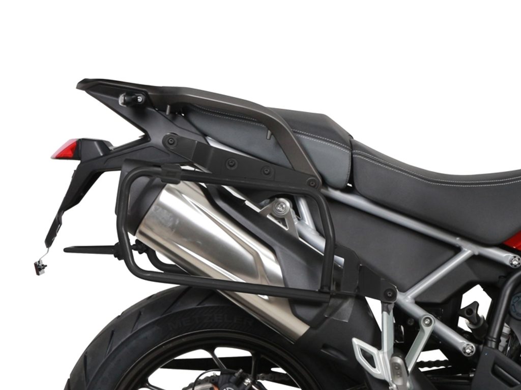 The SHAD 4P system is a more traditional rectangular shape and the fitting kits afford 4 points of pannier fitment, ensuring the panniers are secured firmly to the bike and giving you best load stability.