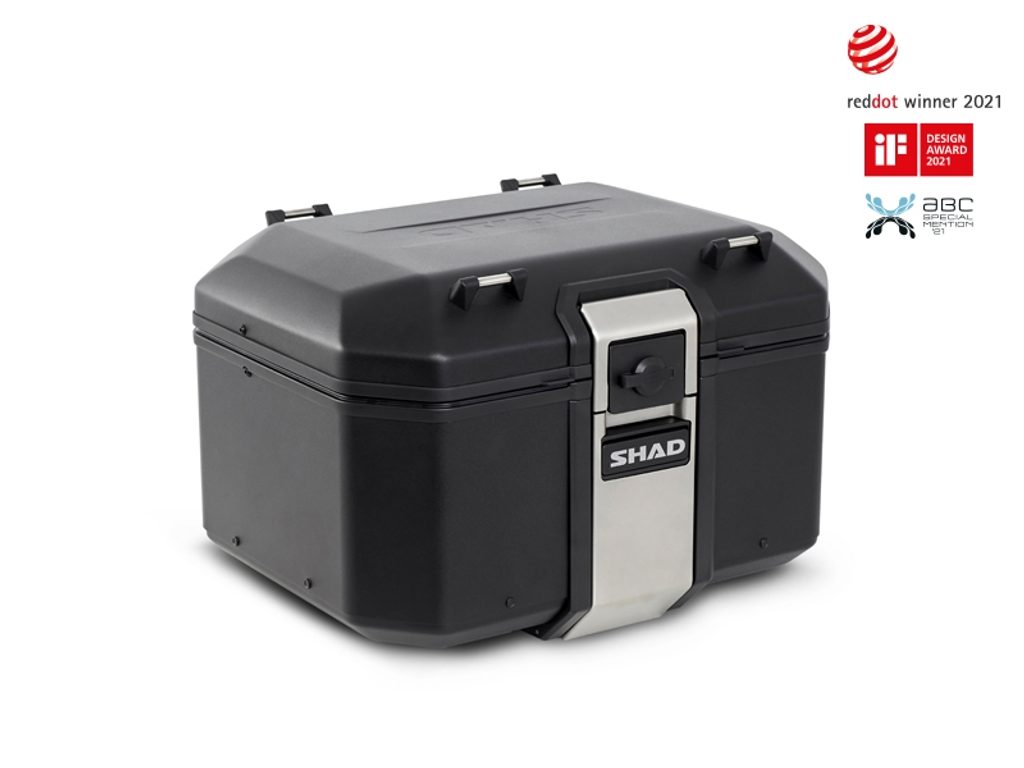 Complete set of SHAD TERRA TR40 adventure saddlebags and SHAD TERRA BLACK aluminium 48L topcase, including mounting kit SHAD Harley Davidson Pan America 1250