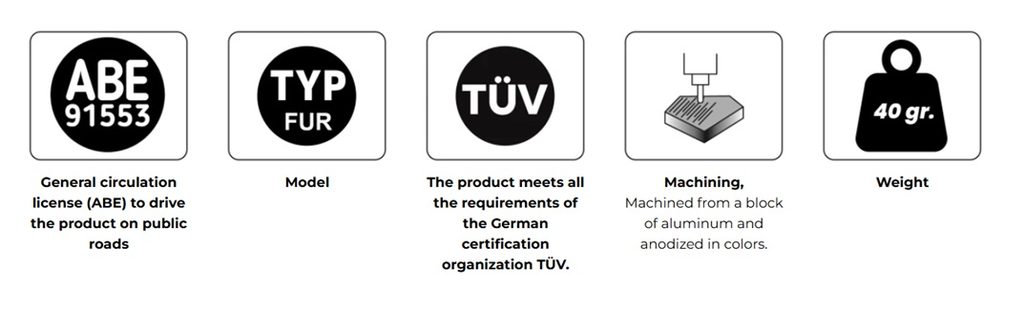 Manufactured from a machined solid aluminum block, these components stand out for their high precision and strength. They feature a black anodized finish that ensures durability and an elegant appearance. They are model-specific, guaranteeing a perfect fit, and include millimetric markings that allow the footpeg to be adjusted with absolute precision according to each rider’s preferences.