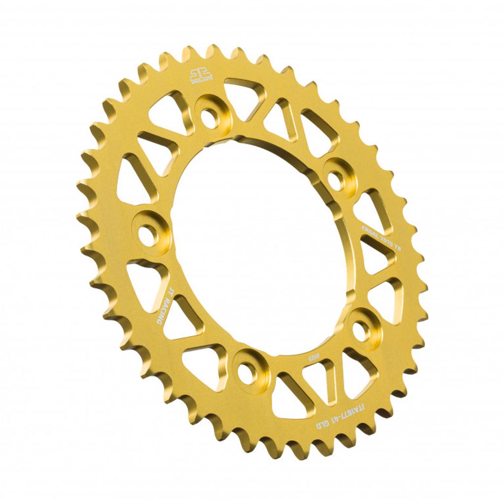 JT sprockets are made using only the best available materials. Aviation-grade 7075-T6 aluminium alloy for lightweight competition sprockets, SCM420 chromoly steel alloy for front sprockets, and we are the only sprocket manufacturer using the ultra-durable high carbon C49 steel for rear sprockets.