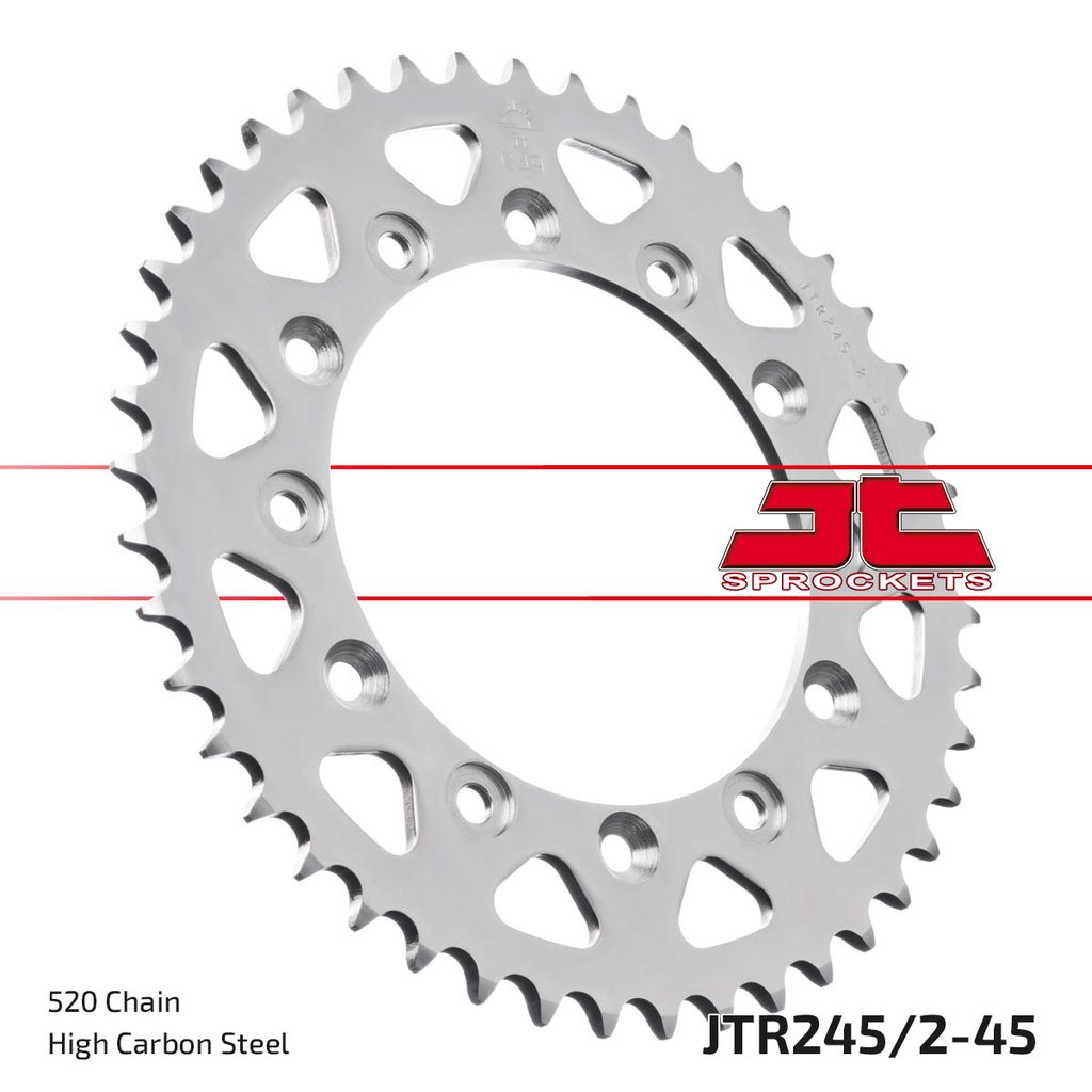JT sprockets are made using only the best available materials. Aviation-grade 7075-T6 aluminium alloy for lightweight competition sprockets, SCM420 chromoly steel alloy for front sprockets, and we are the only sprocket manufacturer using the ultra-durable high carbon C49 steel for rear sprockets.