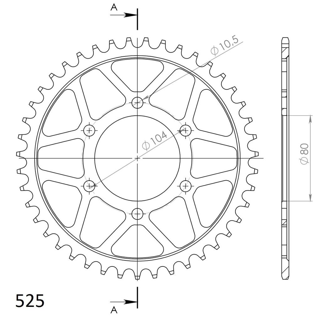 Galinė žvaigždė SUPERSPROX RFE-1489:43-BLK, juodos spalvos 43T, 525