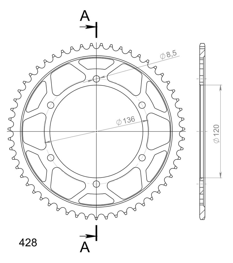 Stronger teeth for up to 10% longer chainkit lifetime. Rear sprocket 55z, chain 428. Daugiau informacijos