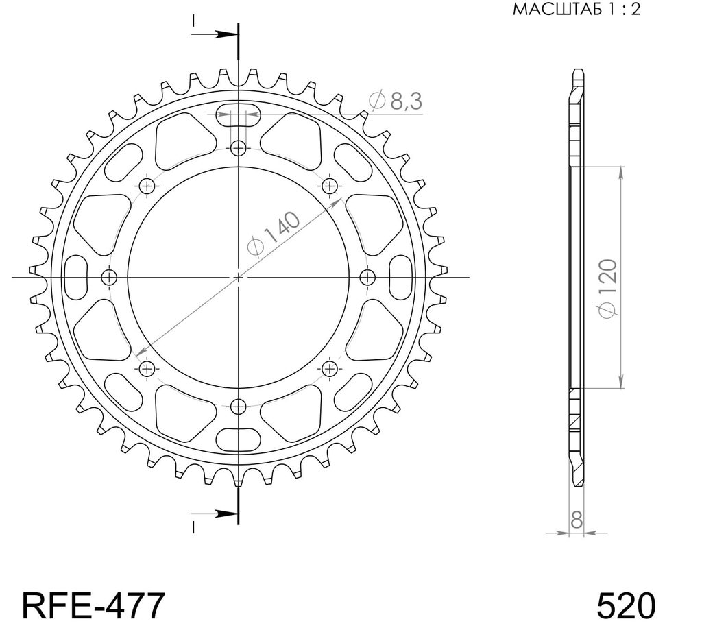 Galinė žvaigždė SUPERSPROX RFE-477:43-BLK, juodos spalvos 43T, 520