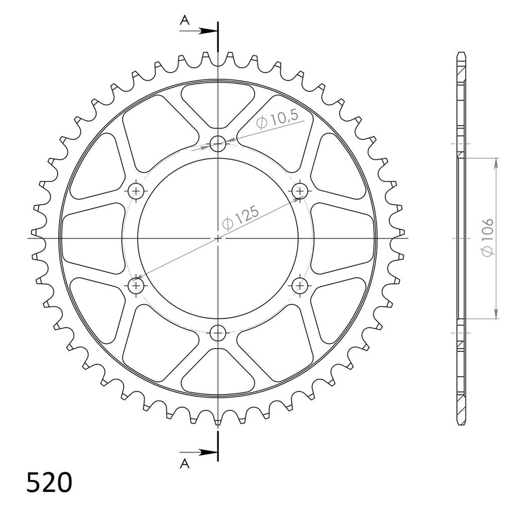 Galinė žvaigždė SUPERSPROX RFE-478:48-BLK, juodos spalvos 48T, 520