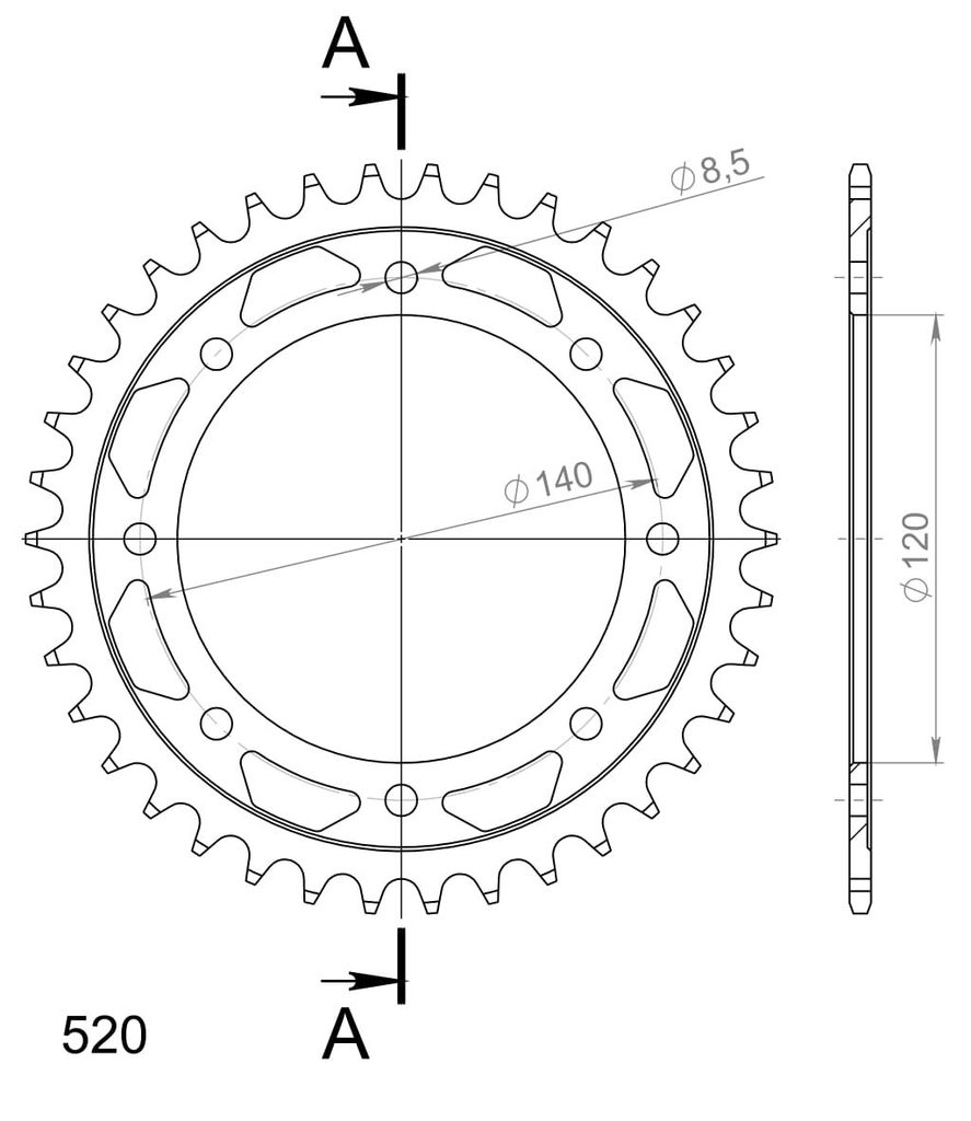 Stronger teeth for up to 10% longer chainkit lifetime. Rear sprocket 38z, chain 520. Daugiau informacijos