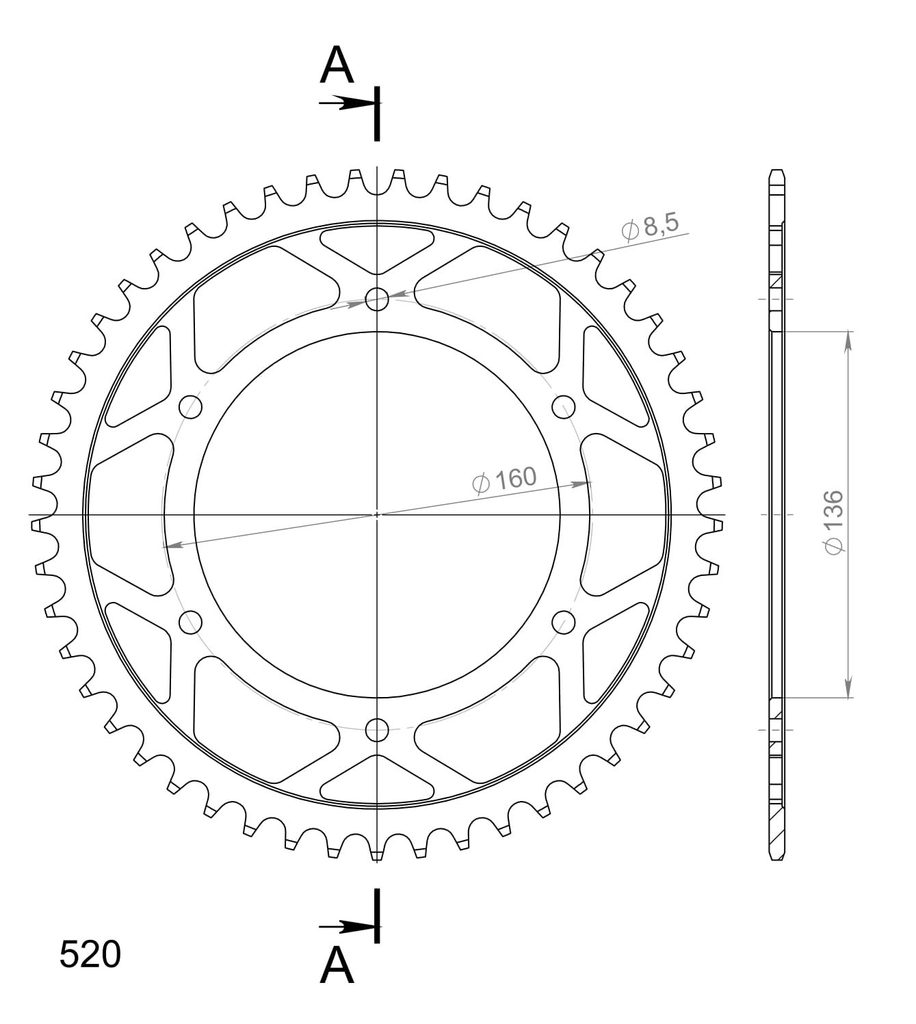 Stronger teeth for up to 10% longer chainkit lifetime. Rear sprocket 49z, chain 520. Daugiau informacijos