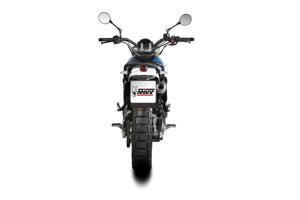 The MIVV X-M1 line, the result of the experience gained in the MotoGP and Moto2 World Championships, is the perfect synthesis between racing style and performance. With a design similar to the exhausts made for the World Championship, the X-M1 silencer has a conical shape and compact dimensions and is able to unleash the captivating MIVV sound.