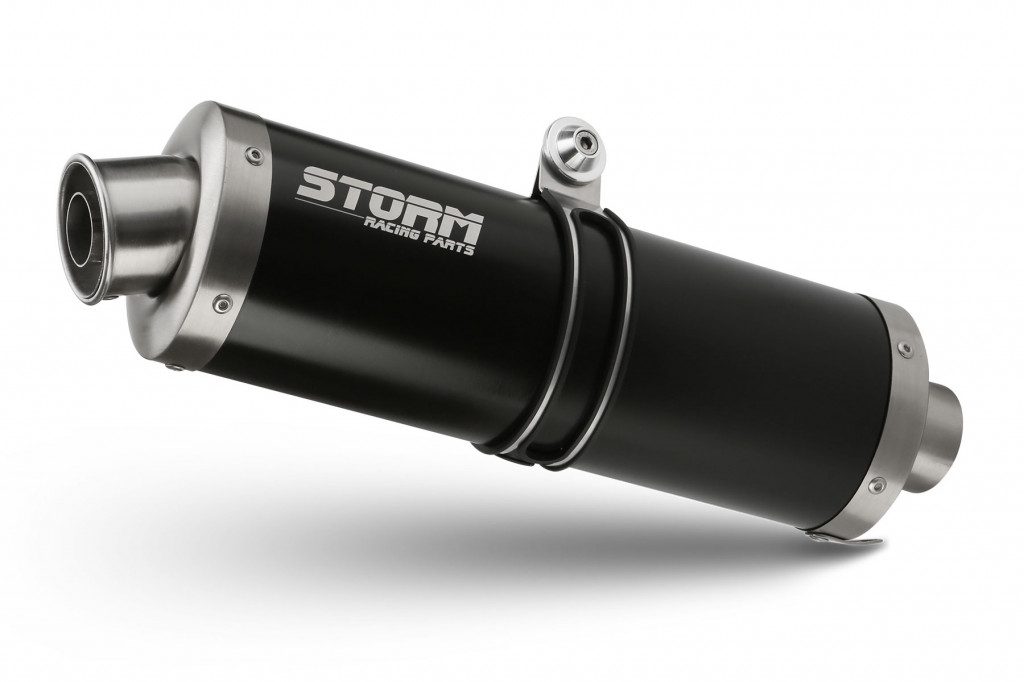 Išmetimo bakelis STORM OVAL E.004.LX2B, juodo plieno spalvos