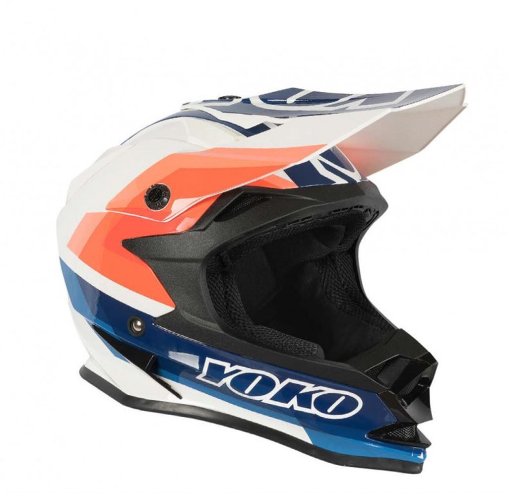 MX helmet YOKO SCRAMBLE white / blue / fire, XXL dydžio
