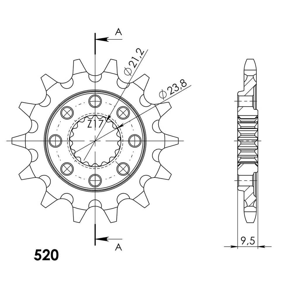 Every sprocket has weight reduction, with radial holes or radial slots (Forged models only) .