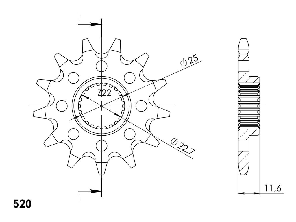 Every sprocket has weight reduction, with radial holes or radial slots (Forged models only) .