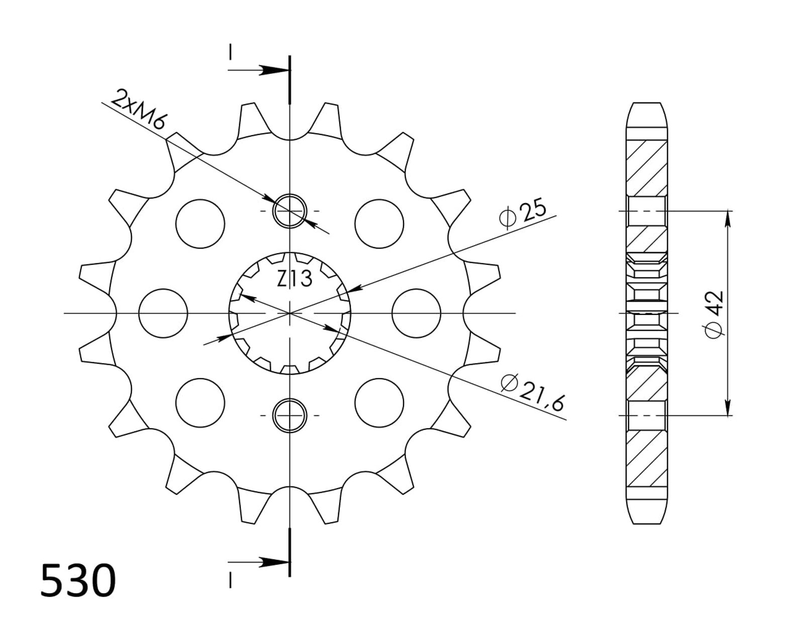 Every sprocket has weight reduction, with radial holes or radial slots (Forged models only) .
