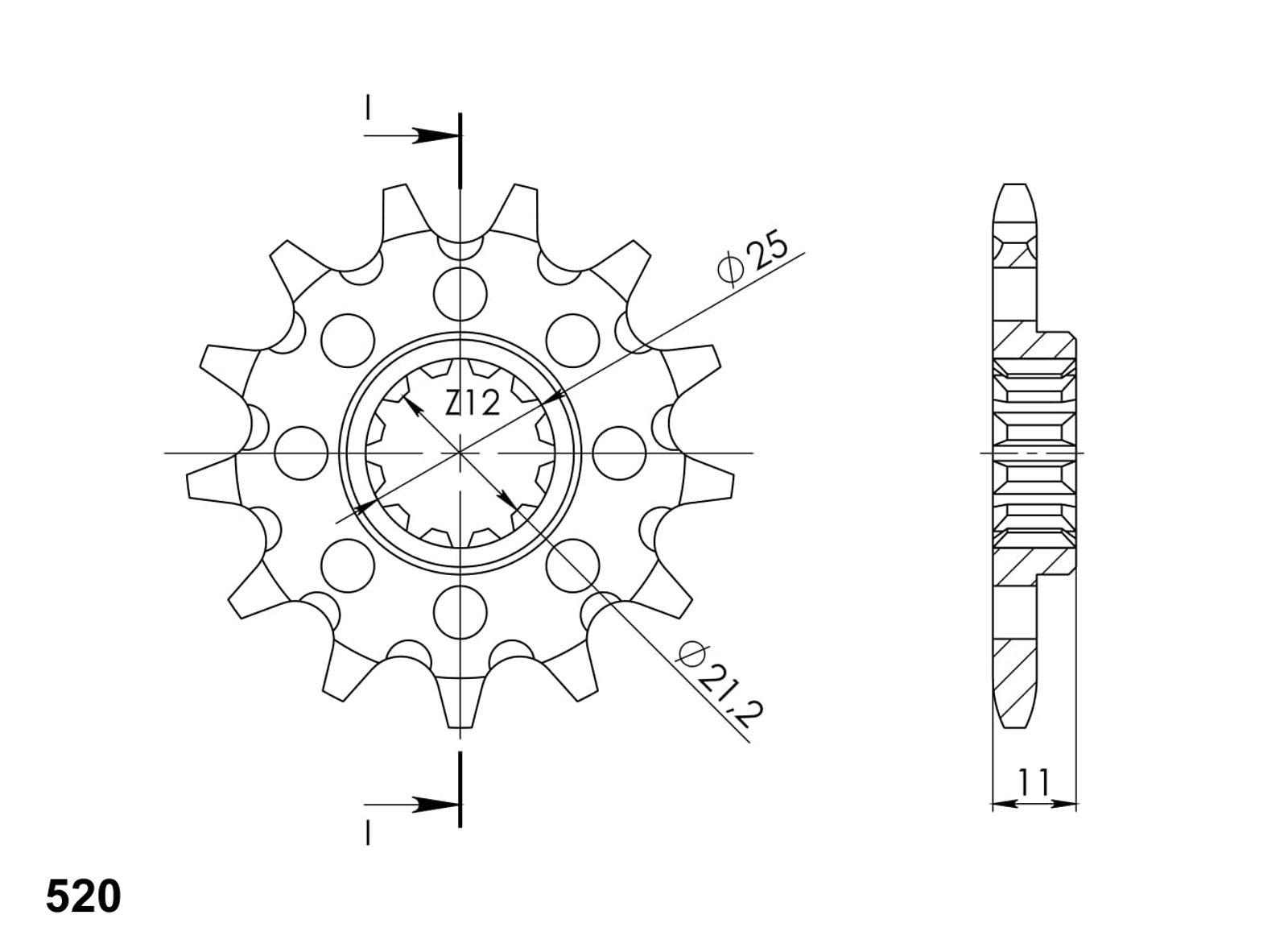 Every sprocket has weight reduction, with radial holes or radial slots (Forged models only) .