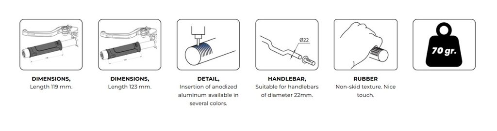 Important Due to the wide variety of original grips, some motorcycles may need to lower the edges of the gas throttle and the use of glue (such as Fischer MS Express) for a correct fixation.