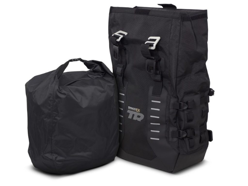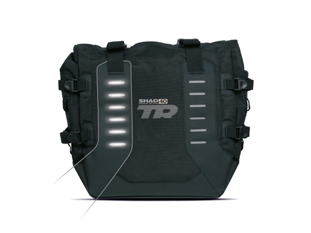 In addition to ensuring a sportive off-road riding, thanks to its low weight and its perfectly integration with SHAD 4P System fitting, the TR40 saddlebags offer a plus of functionality with its 8 reinforced tiedown spots (per bag) which allow to attach extra accessories. The TR40 include a bottle harness and exterior waterproof pouch that can be installed in any of the MOLLE system.