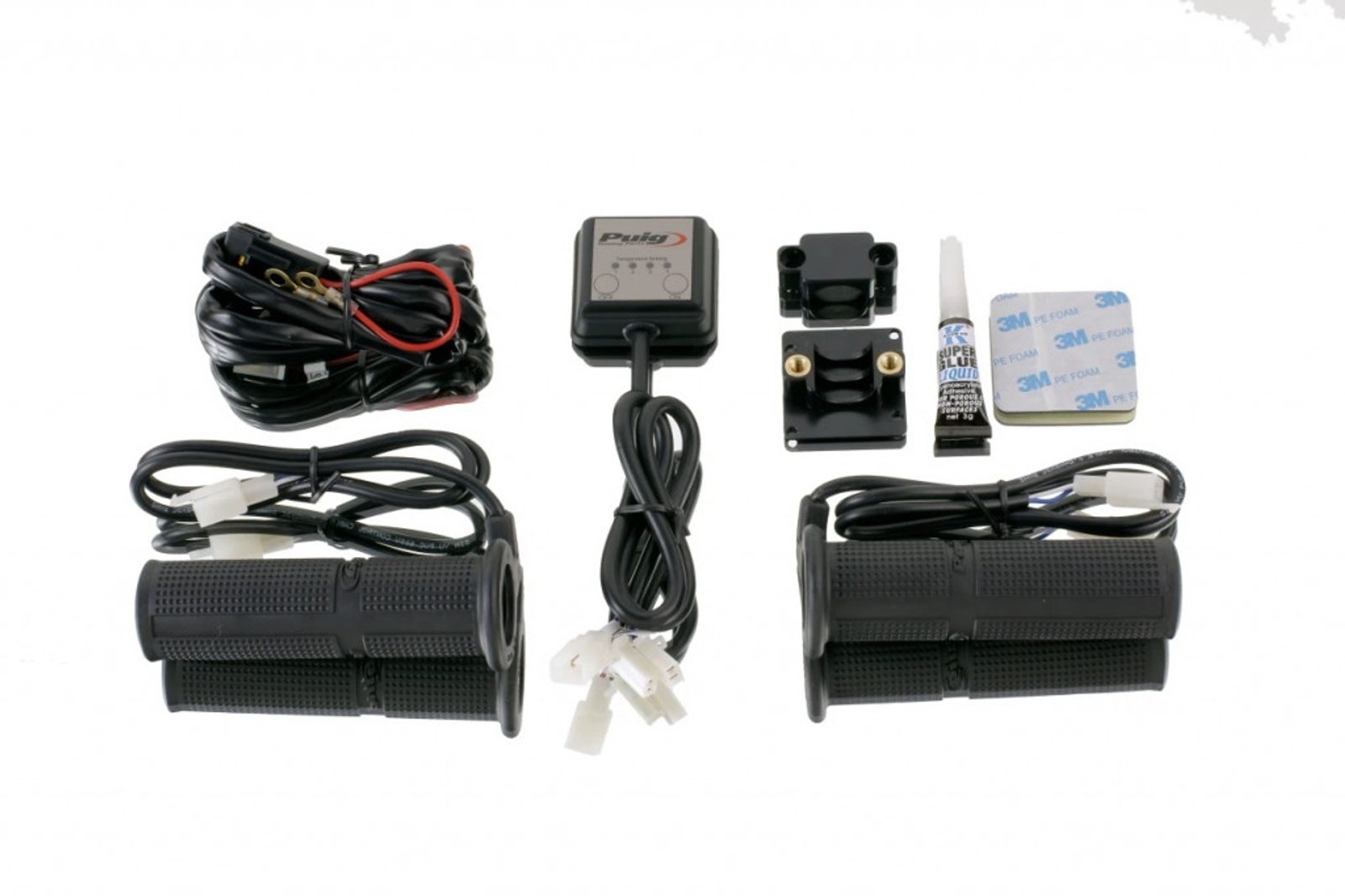 Heated grip set, for the motorcycle with 22 mm handlebar. Designed as the essential accessory to safely perform routes in especially cold areas or for winter season, these heated grips have an integrated resistance that heats them up quickly as soon as the driver puts them into operation. To manage the level of heat received on the hands, a small-sized thermostat has been designed that does not interfere with the use of other motorcycle controls, and has two buttons that allow a very easy, reliable and intuitive use. It can be operated easily even with gloves and allows to configure up to 4 levels of output temperature.