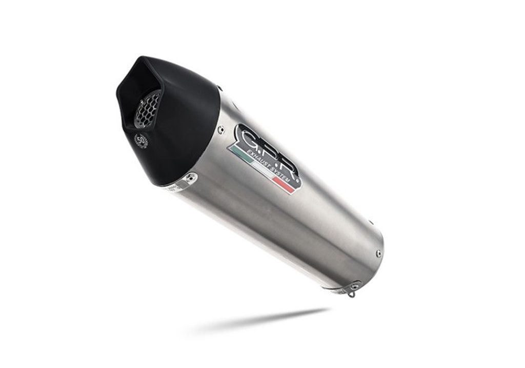 The bottoms are conical and made of satin-finish 304 stainless steel, equipped with dbkiller and specific anchoring bracket, it is an extremely light item, it's hyper-performing, with a modern design and a deep but not invasive sound in compliance with the legal limits. Hyper Furore has been developed thanks to investments in the Moto2 and Moto3 world championships and is one of the new GPR designs in collection.