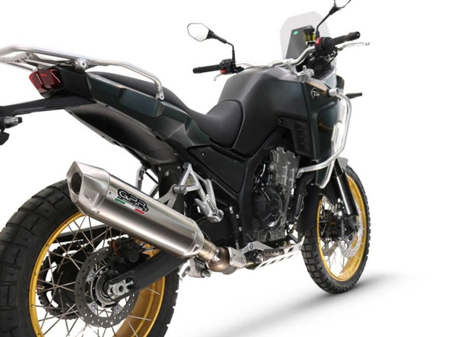 Silencer Furore-X Inox series, it is made with an oval-shaped body diam. 90mm x 130mm in INOX with a thickness of 0.8mm and a perforated INOX inside tube sp. 0.8mm. The bottoms are conical and made of satin-finish 304 stainless steel, equipped with dbkiller and specific anchoring bracket, it is an extremely light item, it's hyper-performing, with a modern design and a deep but not invasive sound in compliance with the legal limits. Hyper Furore has been developed thanks to investments in the Moto2 and Moto3 world championships and is one of the new GPR designs in collection.