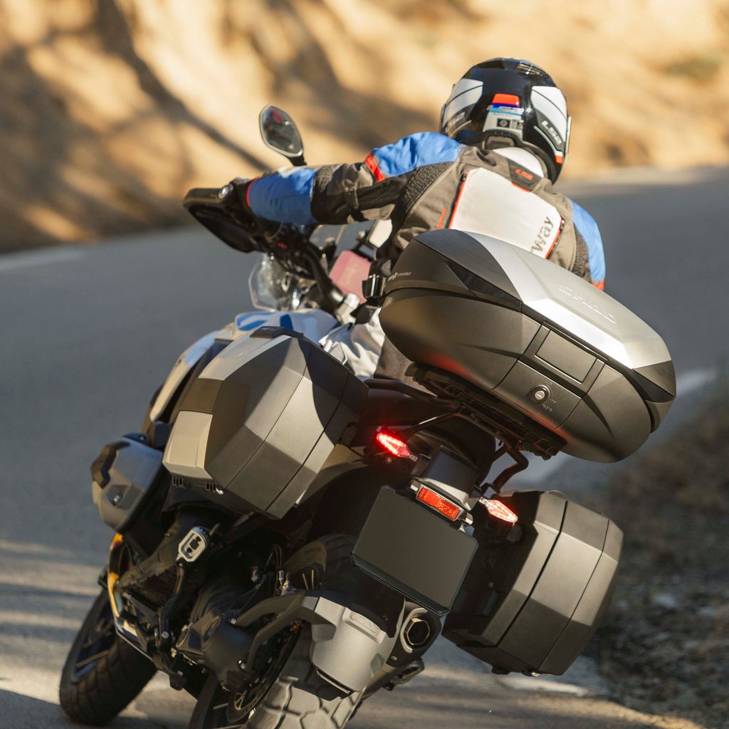 The SH38X joins the current range of expandable top cases SH58X and SH59X, allowing the most demanding and advanced bikers to have a set of EXPANDABLE top and side cases. More details: