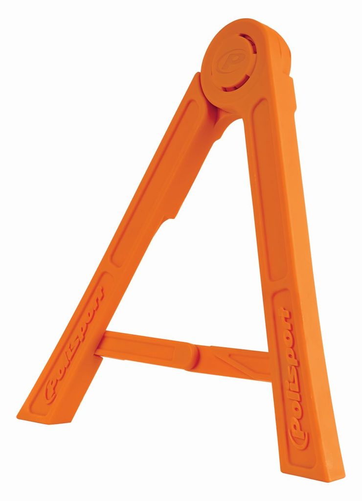Polisport Tripod offers a strong and stable lateral support forming a three point hold up with the rear wheel. Being made from strong plastic components it is as robust as it is light. With colors to match each manufacturers brand livery, it promises to be a practical rider’s best friend.