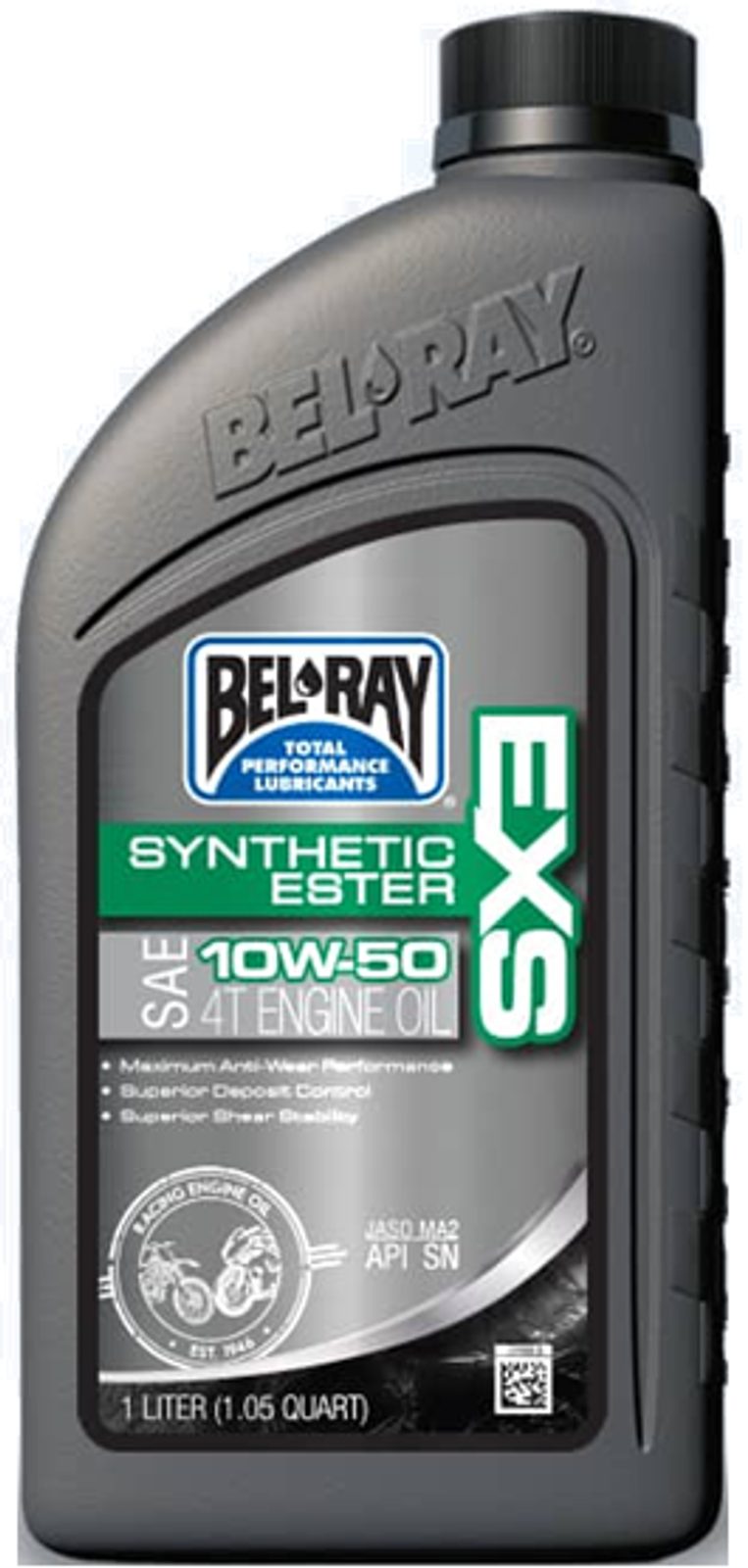 Bel-Ray EXS Full Synthetic Ester 4T Engine Oil is a premium motorcycle oil that uses the finest quality synthetic hydrocarbon and ester base fluids combined with unique Extreme Pressure, anti-wear additives and shear resistant VI improvers to meet the demands of high-performance applications. Lowers engine temperatures and increases horsepower. Meets the performance requirements of API SN and JASO MA2. Suitable for air-cooled/liquid-cooled 4-stroke engines and wet clutches.