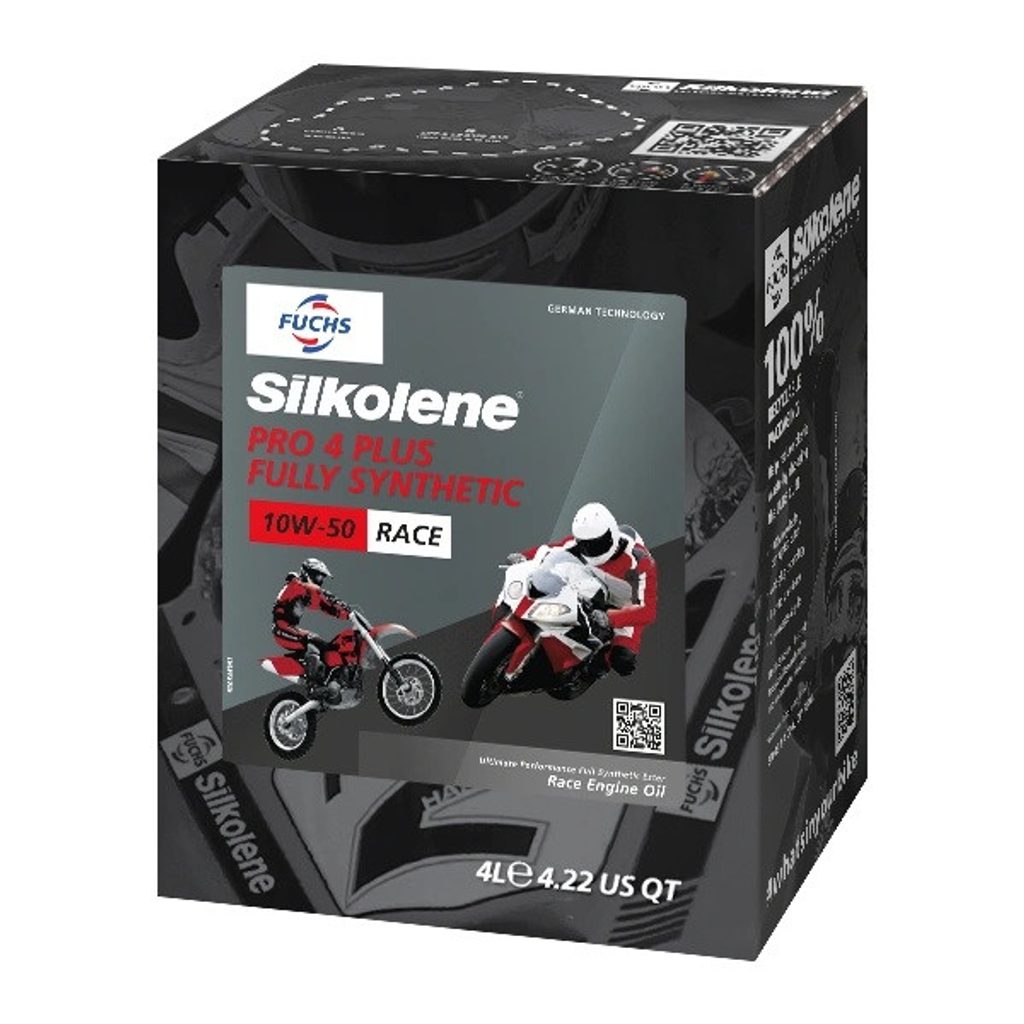 SILKOLENE PRO 4 PLUS uses 100% synthetic ester technology to provide increased power, optimum engine protection, ultimate performance and reliability to four stroke motorcycle engines even under racing conditions. Specially researched synthetic esters provide exceptional film strength and outstanding surface protection from start-up to maximum output in all ambient conditions.